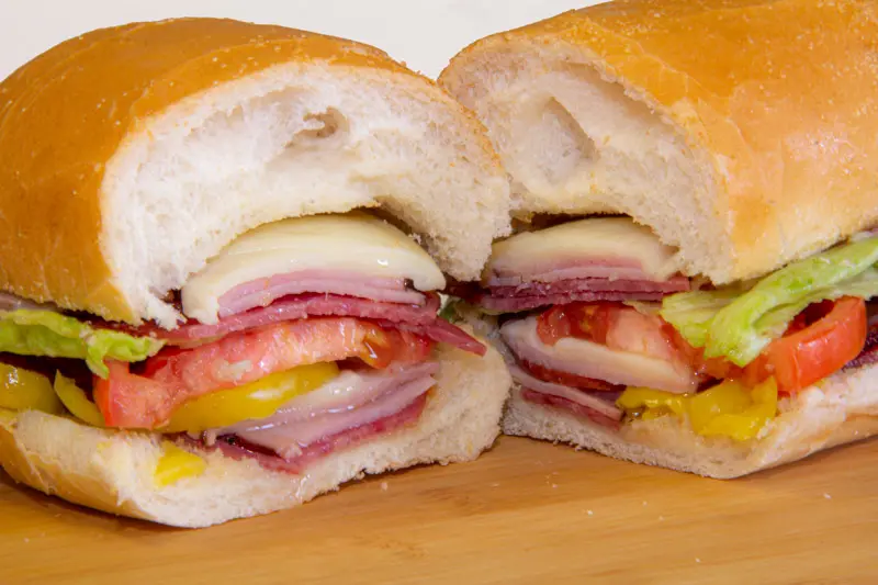 Salami, Capicola Ham, Ham, Pepperoni, Provolone Cheese, Lettuce, Tomato & Italian Dressing; Optional: banana pepper and onion